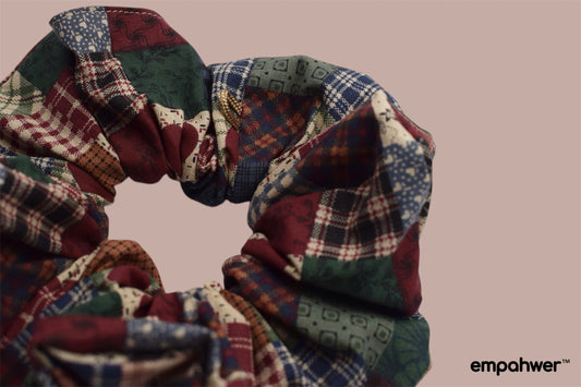 Vintage Patchwork Scrunchie with the Go Loop - Retro Plaid Fabric Hair Accessory