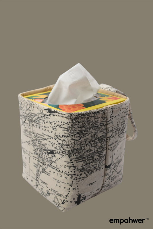 Vintage Travel Navigation Tissue Box Holder with Hanging Loop